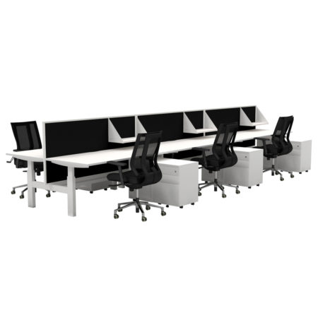 A fresh new look with improved style and performance, Activ Desking is the ultimate solution for manual windup height-adjustable desking. Every team member can choose their optimal desk height to gain full control over their working environment. Available in straight desks, corner workstations or multi-person back-to-back benching, Activ Desking offers full flexibility. Use Cubit 50 or Connect 30 Screens with Activ Desks to increase privacy and functionality.